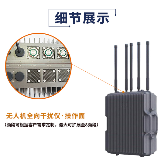 F-03D型多頻段全向干擾儀,由天線陣列、全向干擾設備、信號處理設備組成,系統采用窄帶寬小功率精準打擊和大功率全向干擾相結合的方式,對黑飛無人機遙控鏈路、圖傳鏈路和導航信號進行干擾阻斷,迫使其迫降或驅離